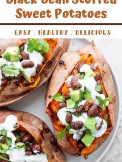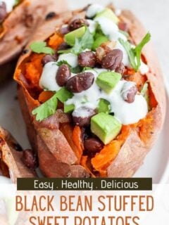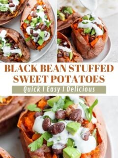 If you’re looking for an easy AND filling vegetarian dinner idea, you’re going to LOVE these Black Bean Stuffed Sweet Potatoes! They come together with just a few simple ingredients and are very easy to customize based on your personal preferences.