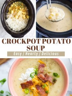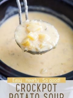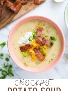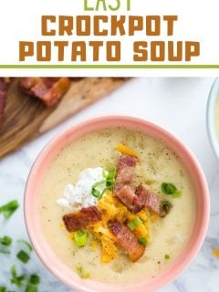 This crockpot potato soup recipe is perfect for meal prep or as a make ahead meal, and reheats very well. In fact, I think it’s even tastier the next day!