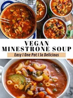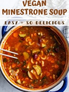 This Vegan Minestrone Soup is simple to make and comes together all in one big pot in just over 30 minutes! It makes for truly delicious leftovers and is perfect for SOUP SEASON!