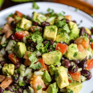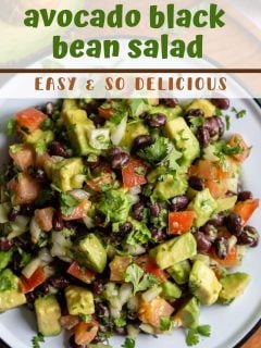 This avocado & black bean salad is a fresh, flavorful mix of avocados, tomato, onion, black beans, cilantro, all tossed in a zesty lime blend. Serve this easy salad as a light appetizer with chips or pair it with your favorite protein.