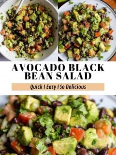 This avocado & black bean salad recipe is simple, yet so tasty! You only need a handful of ingredients to throw it together and it only takes about 10 minutes! See the recipe card below for a list of exact ingredient measurements.