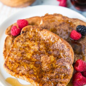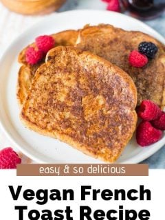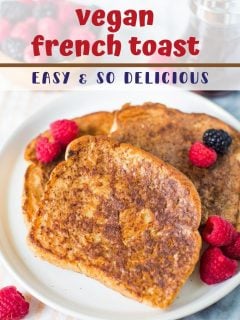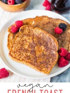 I’ve tried a ton of vegan French toast recipes and could NEVER find one that was as good as the original…so I created my own. AND OH BUDDY is this French toast SO GOOD even without the eggs! This is my go-to weekend breakfast for when we really want to treat ourselves. ?
