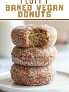 These easy Baked Vegan Donuts are perfectly light, fluffy and moist! This healthier donut recipe is plant based and can be whipped up in less than 30 minutes! The cinnamon sugar coating is incredible, but optional if you want to keep these a little on the lighter side.