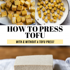 The KEY to delicious and crispy tofu is pressing it! It’s ridiculously easy to do and I’m going to show you how to do so with AND without a tofu press. You’ll be enjoying delicious tofu in NO TIME!
