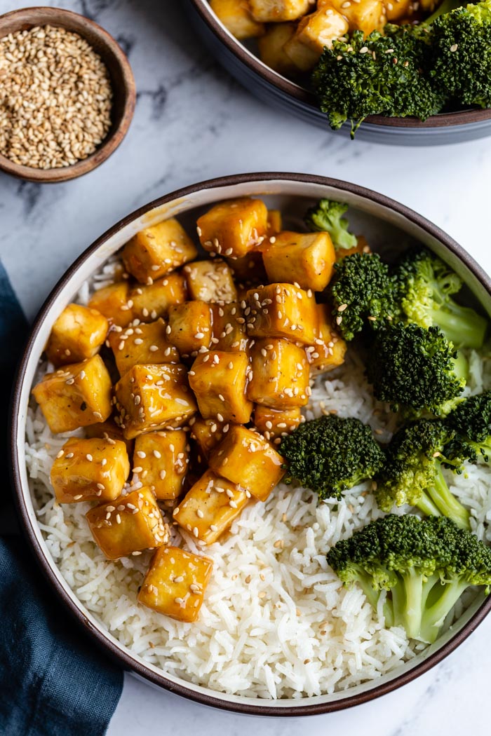 This orange tofu is a Panda Express copycat recipe with a vegan twist! Instead of crispy chicken, we’re using tofu that is tossed in a sweet and tangy orange sauce. My version tastes just as good as the restaurant version and is so convenient to make at home! You’re sure to love this quick and easy orange tofu recipe that’s perfect for make-ahead lunches or busy weeknight dinners.