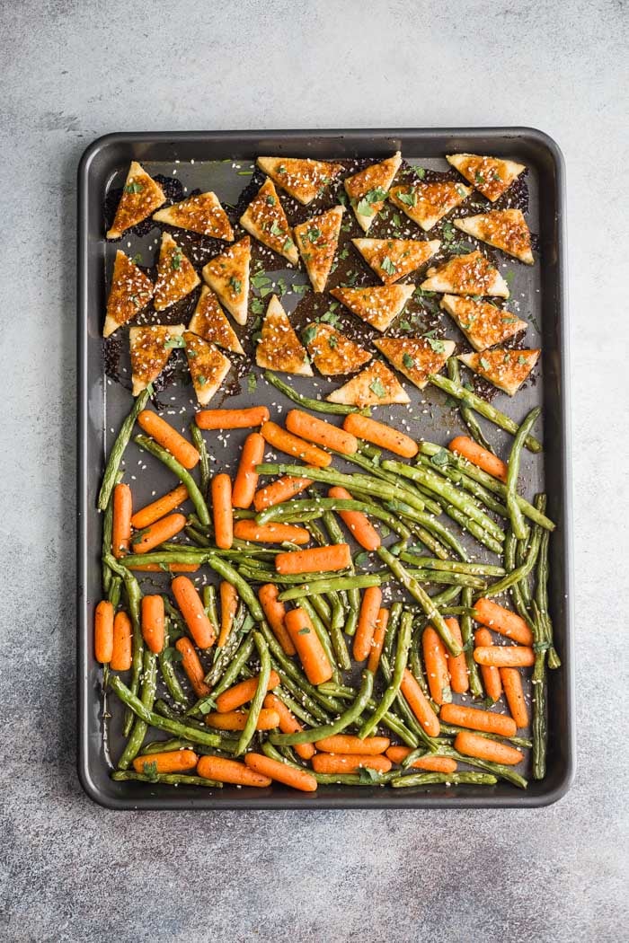 Sheet Pan Tofu & Veggies- this easy sheet pan dinner is simple to throw together and a great vegan dinner!
