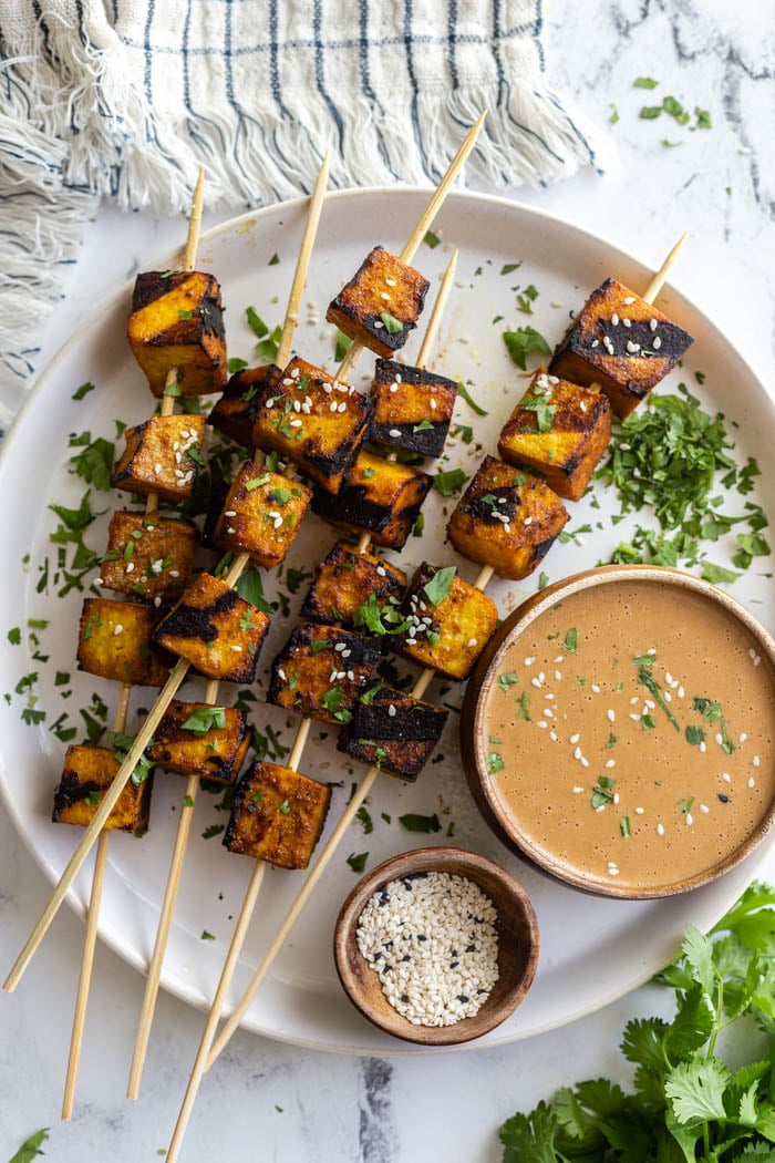 These Tofu Satay skewers are simple to make and so delicious! Perfect for grilling season.