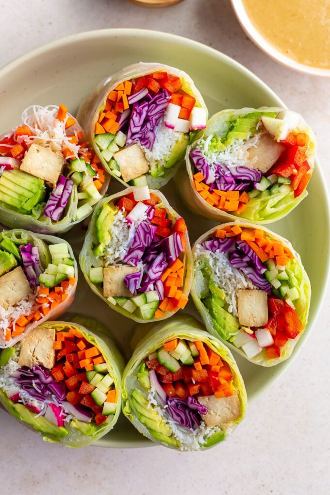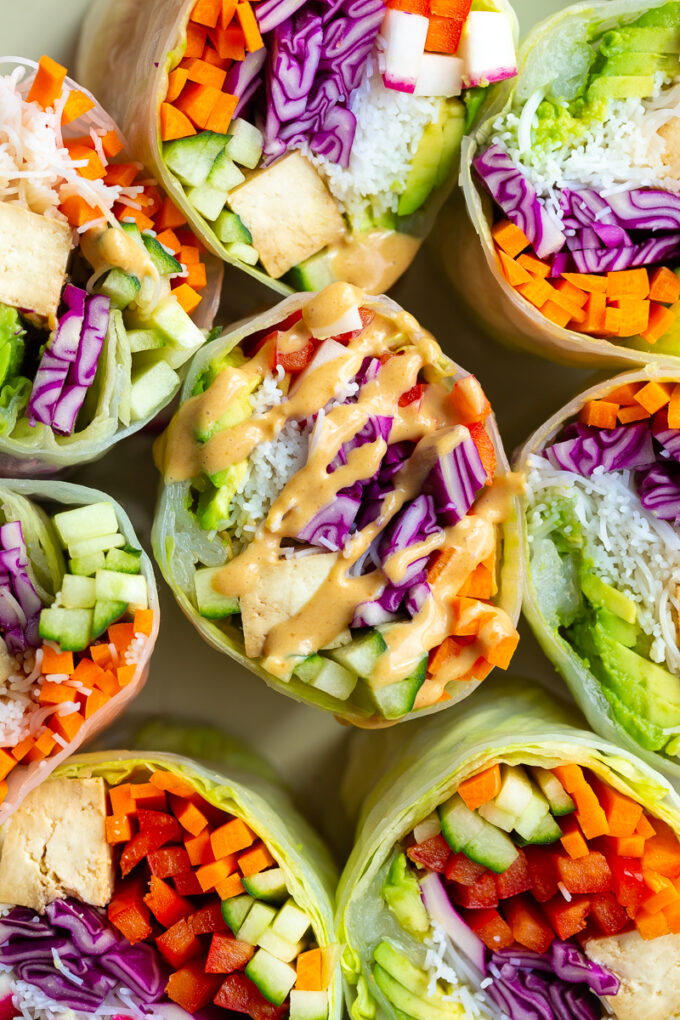 If you’re looking for a simple Summer Roll recipe that’s loaded with veggies, protein, AND easy to make, then look no further! I love making these extra big for ease and like how many veggies I can stuff into 1 roll!