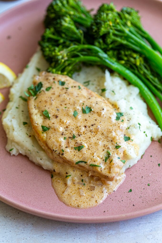 Either way, I KNOW that you’re going to love the simple chardonnay sauce SO MUCH. I could eat it with a spoon. I made sure that the recipe makes plenty of the sauce so that there’s extra for drizzling on your veggies and whatever sides you serve this with (or, as mentioned before, shoveling in your mouth with a spoon).