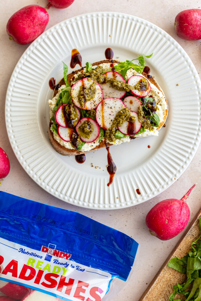 Radishes AND their Dandy® Romaine to make this simple but DELICIOUS toast. They’re one of my long-time sponsors and I go out of my way to find their produce in stores because it’s SO GOOD!