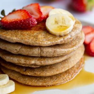 Oat Flour Pancakes are an incredibly easy and filling breakfast for any morning. They are so easy to make, enjoy, and store that you might want to make these once a week!