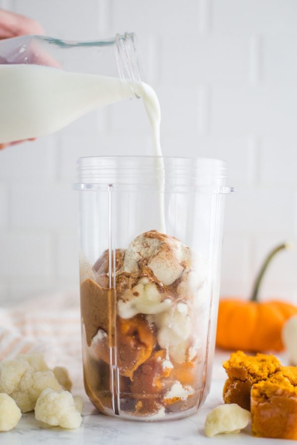 - Add all of the ingredients in your blender and blend until creamy and smooth.