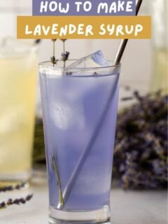 Lavender Syrup is a sweet, floral, flavorful mix-in for making delicious drink recipes! It’s as easy to make as any other simple syrup and requires just 3 ingredients. Perfect for flavoring coffee, cocktails, lemonade, iced tea, and more!