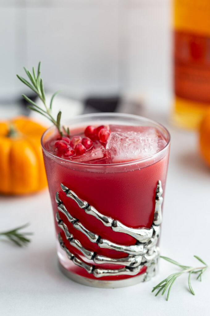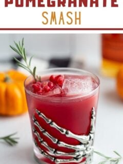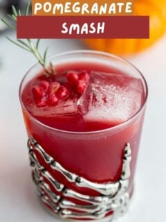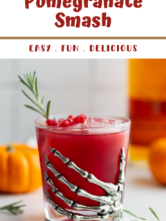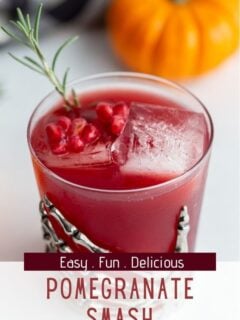 Looking for a simple and fun holiday themed cocktail? Give this Pomegranate Smash a try! It’s made with just a handful of simple ingredients and the color makes it so fun for halloween and holiday!