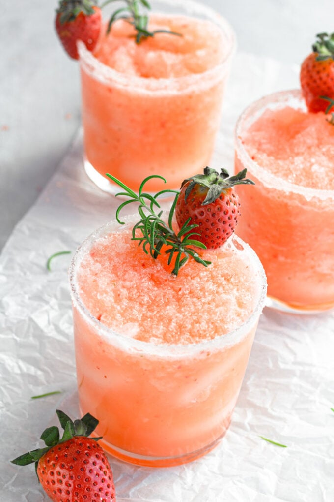 - Can I sub out frozen strawberries for fresh?: Yes! The frozen berries may even make it more slushie!