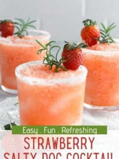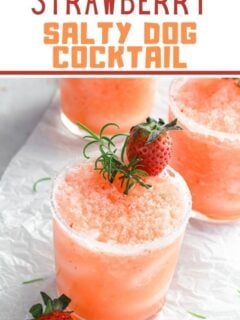 It’s summer cocktail season and up first is this FROZEN Strawberry Salty Dog cocktail that you’re going to LOVE. It’s simple to make (love a good blender cocktail) and it’s perfectly refreshing for warmer days!