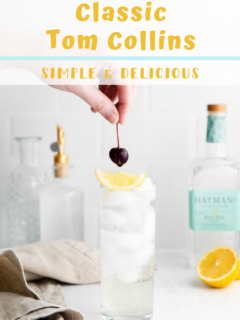 Learn how to make this simple and CLASSIC Tom Collins drink that’s a delicious and refreshing mix of of gin, lemon juice, simple syrup and club soda! Such a simple yet enjoyable cocktail that I know you’re going to love!