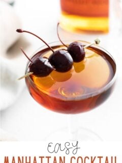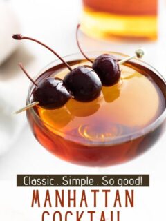 This Classic Manhattan Cocktail comes together in minutes and with just THREE simple ingredients. The cherries are optional but highly recommended!