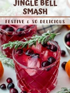 Looking for a fun and festive cocktails for the holidays? This ‘Jingle Bell Smash’ is my winter take on a whiskey smash that’s made with a rosemary simple syrup and cranberry juice (plus your favorite bourbon of course!).