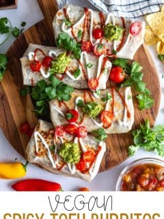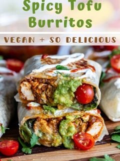 I’m taking a quick break from holiday recipes to share these Spicy Tofu Burritos! Considering how much I LOVE TOFU, it’s been a while since I shared a new tofu recipe.