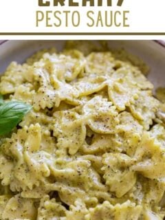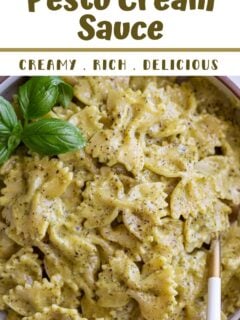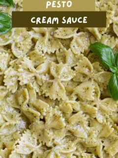 This delicious Pesto Cream Sauce is easy to make with rich cream, flavorful pesto and parmesan cheese. Serve it over your favorite pasta for a family friendly dinner that uses simple ingredients and comes together in less than 20 minutes.