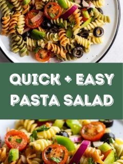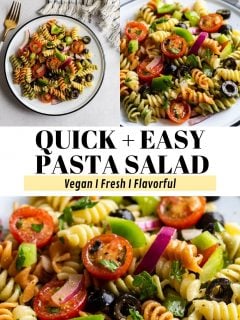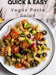 If you’re looking for more pasta salad inspiration, you should also try this Ranch Pasta Salad (vegan friendly!), Vegan Macaroni Salad, Lemon Broccoli Pasta Salad, and this Cucumber Vegan Pasta Salad!