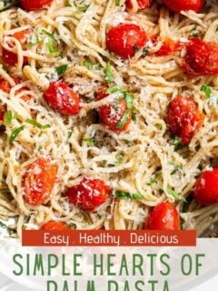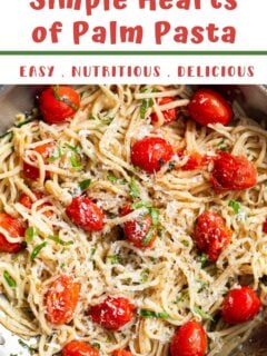 Simple Hearts of Palm Pasta is made with hearts of palm noodles, instead of traditional pasta. A grain-free, low-carb and keto-approved recipe that is super easy to make with minimal ingredients. Make this healthy vegetarian (or vegan) recipe in less than 20 minutes!