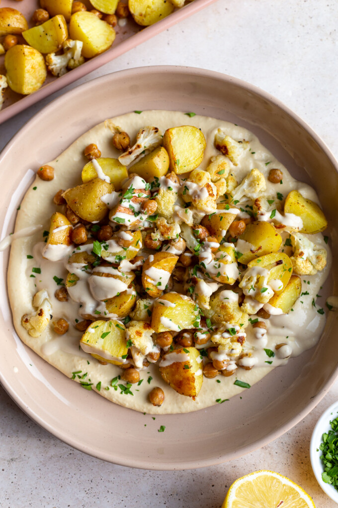 Roasted Potato, Chickpea, and Cauliflower Bowls