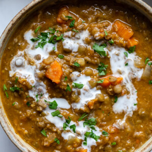 I’ve been making a version of this lentil soup for many years now. It’s typically a “throw a bunch of stuff in the pot” situation, but I finally managed to write it down into a cohesive recipe for you. It’s so super simple and very satisfying! Here’s the simple method: