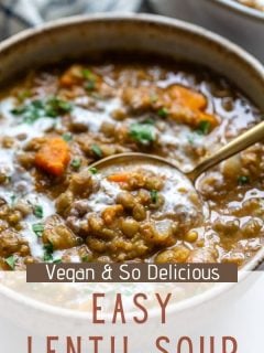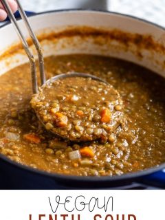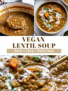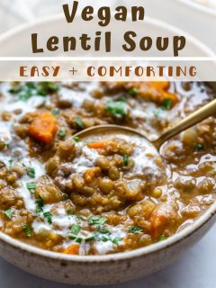 Bringing you major warm, cozy and comforting vibes with this Vegan Lentil Soup! This soup recipe is so easy to make and it’s loaded with nourishing vegetables, warm spices and lentils, all simmered in a savory veggie broth. An easy one pot dinner option that the whole family will love!