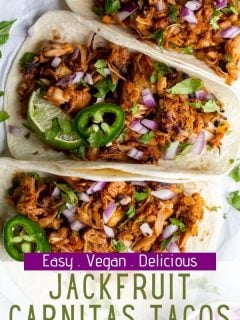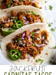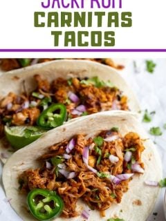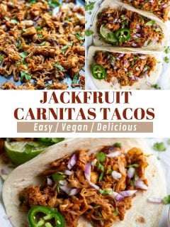 Have you tried jackfruit yet!? It’s quickly become one of my favorite NATURAL meat substitutes and these Jackfruit Carnitas Tacos are a truly delicious way to enjoy it! Can’t wait to hear what you think of this recipe!