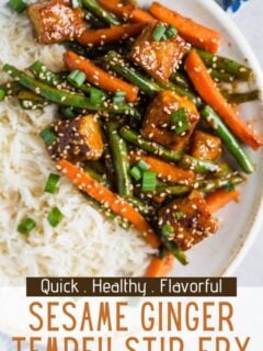 This Sesame Ginger Tempeh Stir Fry Recipe is one of the most popular recipes on my blog! It’s an easy vegan stir fry that’s simple to make and SO DELICIOUS! Even my meat loving husband enjoys this dish!